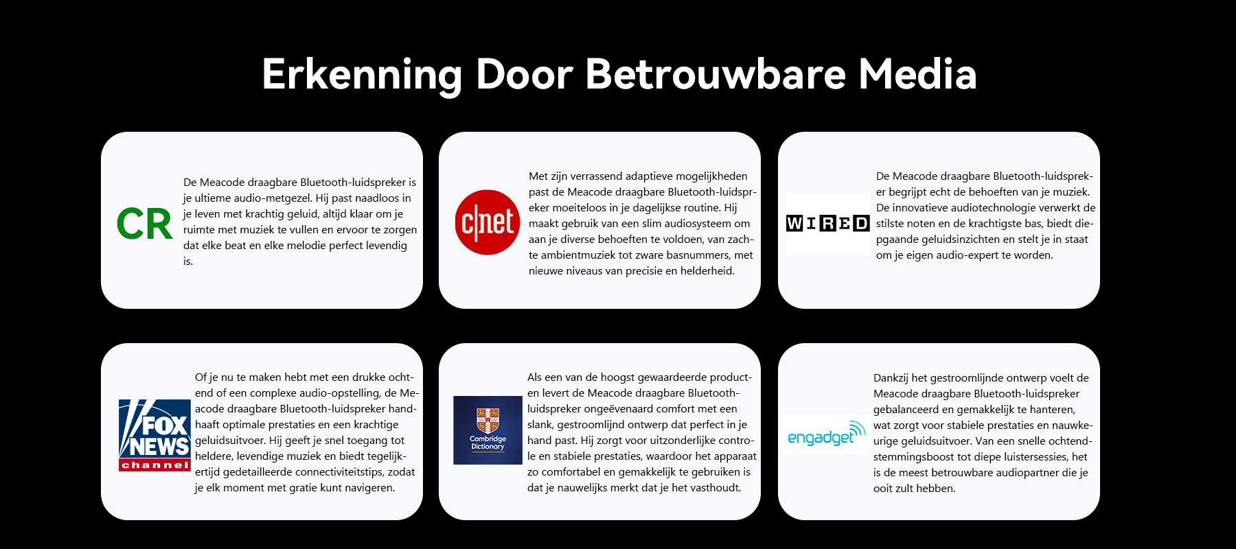 Als fervent wandelaar en deeltijdse muziekproducent hield Klaus Schneider ervan de wereld te verkennen, maar zijn reizen voelden altijd onvolledig. Hij was het zat om te moeten kiezen tussen de perfecte afspeellijst en het perfecte uitzicht. De fragiele luidsprekers die hij meenam, klonken zwak en de goede waren te zwaar. Die frustratie gaf de aanzet tot de oprichting van het merk Meacode. De Meacode Portable Bluetooth Speaker was zijn antwoord. Hij levert rijk, krachtig geluid in een ultralichte, duurzame behuizing. Hij is ontworpen voor avontuur, zodat je kunt genieten van je favoriete nummers, of je nu op een bergpad bent of gewoon aan het sporten bent.