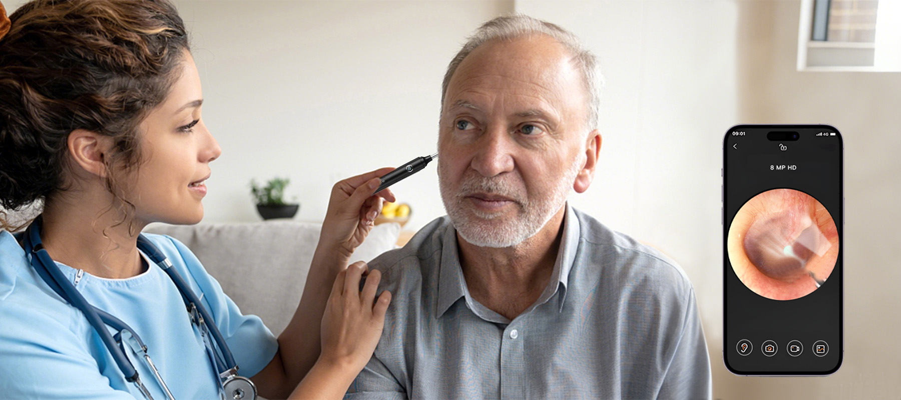 Maakt u uw oren nog steeds schoon op gevoel? Een 8MP high-definition camera biedt u een ongekend helder zicht, waardoor elk detail in beeld komt. 6 LED-schaduwvrije lampjes helpen bij de verlichting, waardoor u een volledig beeld krijgt van de binnenkant van uw gehoorgang en een precieze visuele reinigingservaring mogelijk wordt.